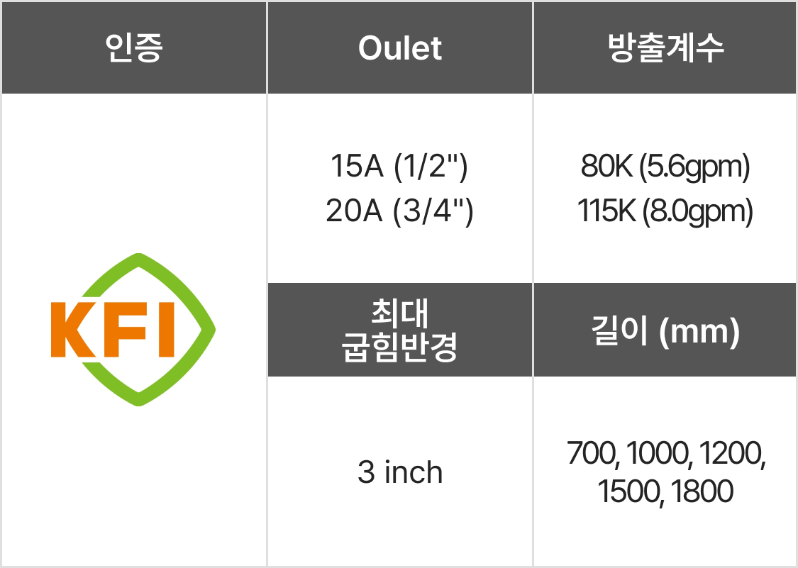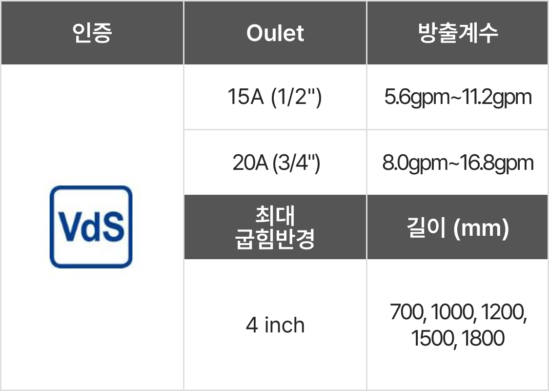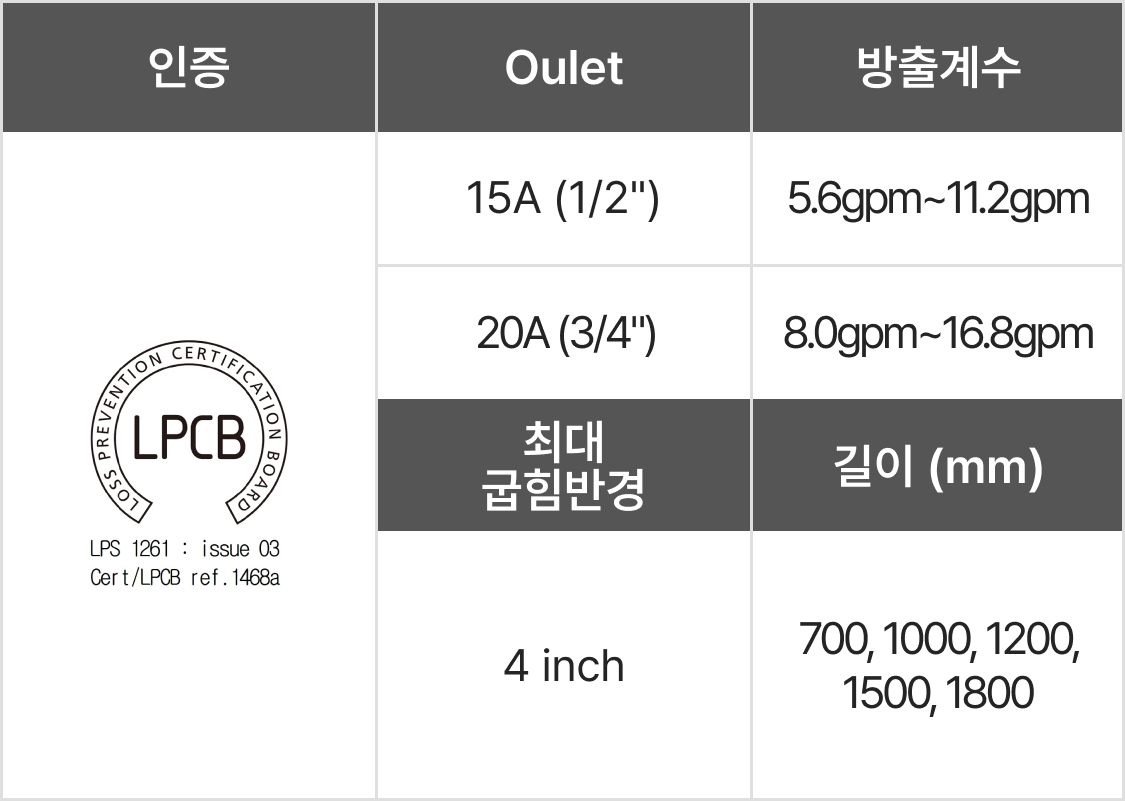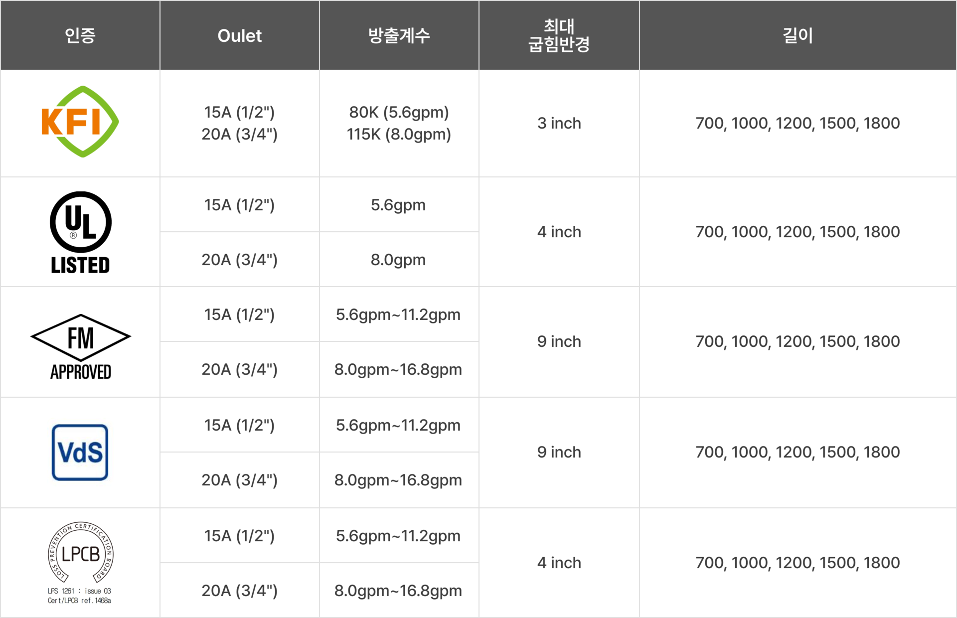 | 브라켓 고정 타입 인증 : KFI, UL, FM, VdS, LPCB |