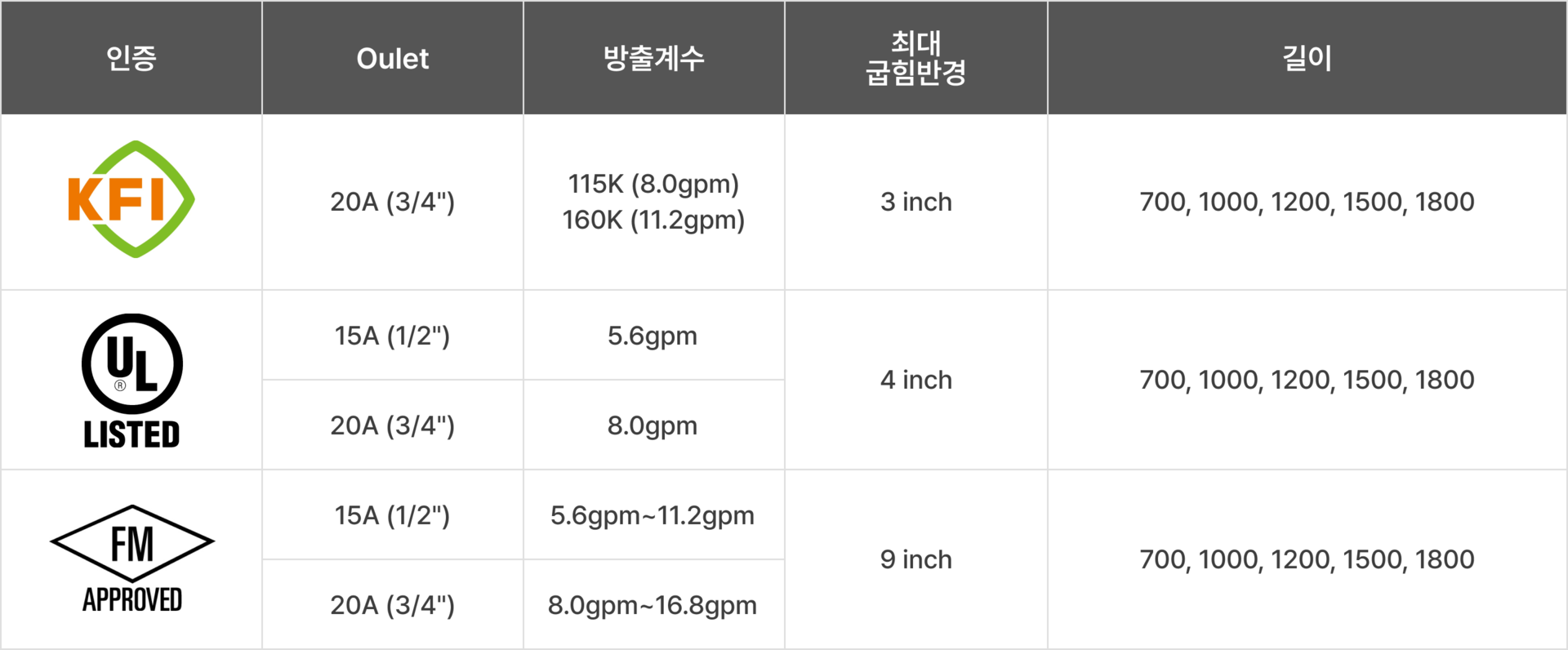 | 브라켓 고정 타입 인증 : KFI, UL, FM |